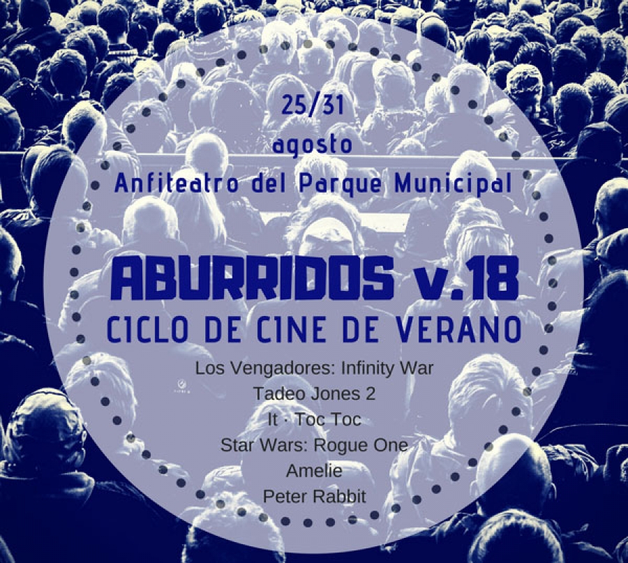 La Asociación Cultural “El indulto a Barrabás” – Cofradía de La Sentencia- organiza entre los días 25 y 31 de agosto la 18ª edición del ciclo de cine “Aburridos”. La proyección de las películas se realizará en el Anfiteatro del Parque a partir de las 22:00 horas. La entrada tiene el simbólico precio de un euro.