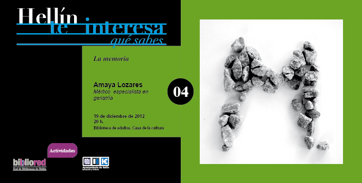 El miércoles 19 de diciembre en la Biblioteca de Adultos de la Casa de la Cultura tendrá lugar a las 20 h. la charla “Se me olvidan las cosas: la memoria humana” por Amaya Lozares Sánchez.