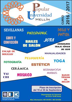 La Universidad Popular de Hellín es un proyecto de desarrollo Cultural de nuestro municipio dirigido a promover la participación y la educación para mejorar las inquietudes culturales o de ocio de los ciudadanos.