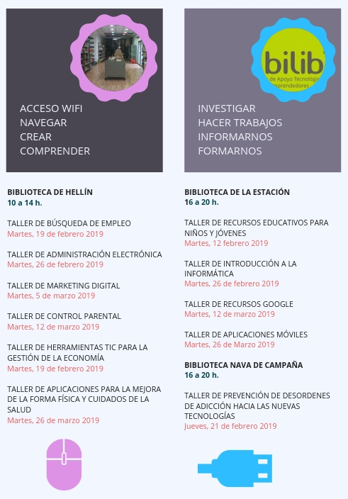 Talleres formativos TIC e Internet. Red de Bibliotecas de Hellín. Del 8 de febrero al 4 de abril 2019